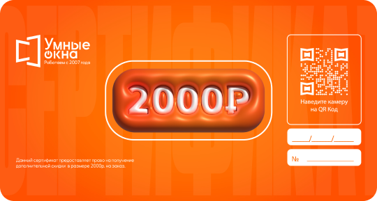 Дополнительная скидка в размере 2000 рублей на заказ окон. Можно получить в качестве «секретного приза» от замерщика.